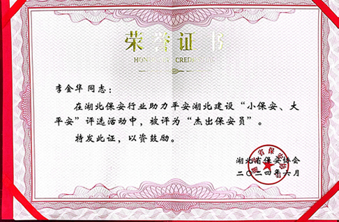 杰出保安員榮譽證書